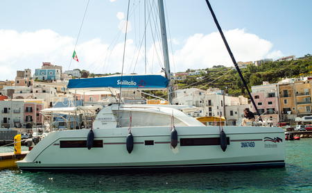 Das ist insofern erstaunlich, als dem Patin a Vela (frei übersetzt: besegelte Kufe) etwas Entscheidendes fehlt: Der 5,60 Meter lange, schwertlose Kat hat keine wie immer geartete Ruderanlage, sondern wird ausschließlich mit Hilfe des Masttrimms sowie durch die Verlagerung des Körpergewichts gesteuert. Rutscht der Segler oder die Seglerin nach vor, luvt das Boot mit seinen beiden V-förmigen, unten abgeflachten Rümpfen an, rutscht man nach achtern, fällt es ab. Das hat mir der Verschiebung des Lateraldruckpunkts bzw. mit dem Verhältnis von Lateral- zu Segeldruckpunkt zu tun – wer sich an den Theorieteil vom Grundkurs erinnert, dem dämmert möglicherweise etwas …